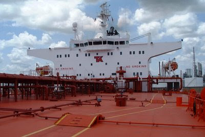 The vessel remained afloat and continued her voyage whilst taking on water until her bow settled submerged on the sea bottom in 36m of water about 70 nautical miles from Singapore. She settled with her entire stern section sticking out of the water.